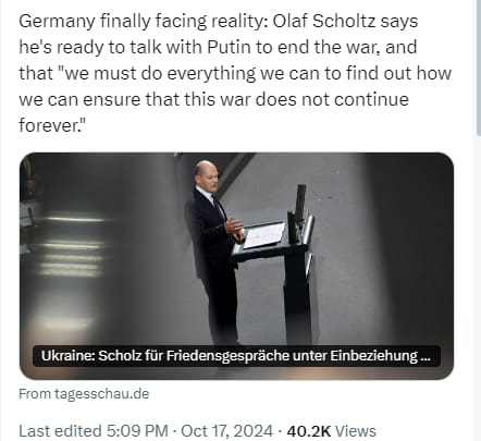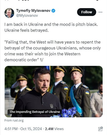 On October 16th, Volodymyr Zelenskyy addressed the Ukrainian parliament. His address is divided into a public part and a secret part. The public part, which Zelenskyy has dubbed a 5-step ‘Victory Plan’, does contain a qualified admission that he desires to bring Russia to negotiations: