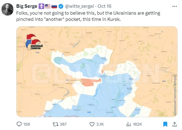 Then in August of this year, the Ukrainians actually sent an invasion force into Russia, specifically the relatively unguarded Kursk oblast. They actually caught the Russians with their pants down and managed to advance quite deeply into the region before the Russians got their act together and started to push them back. Now, as at the time of publication, this Ukrainian invasion force has run out of steam and supplies. There are reports that the remaining Ukraine forces are being ‘pinched into a pocket’ and, if that is true, then it is only a matter of time before they are captured or eliminated.